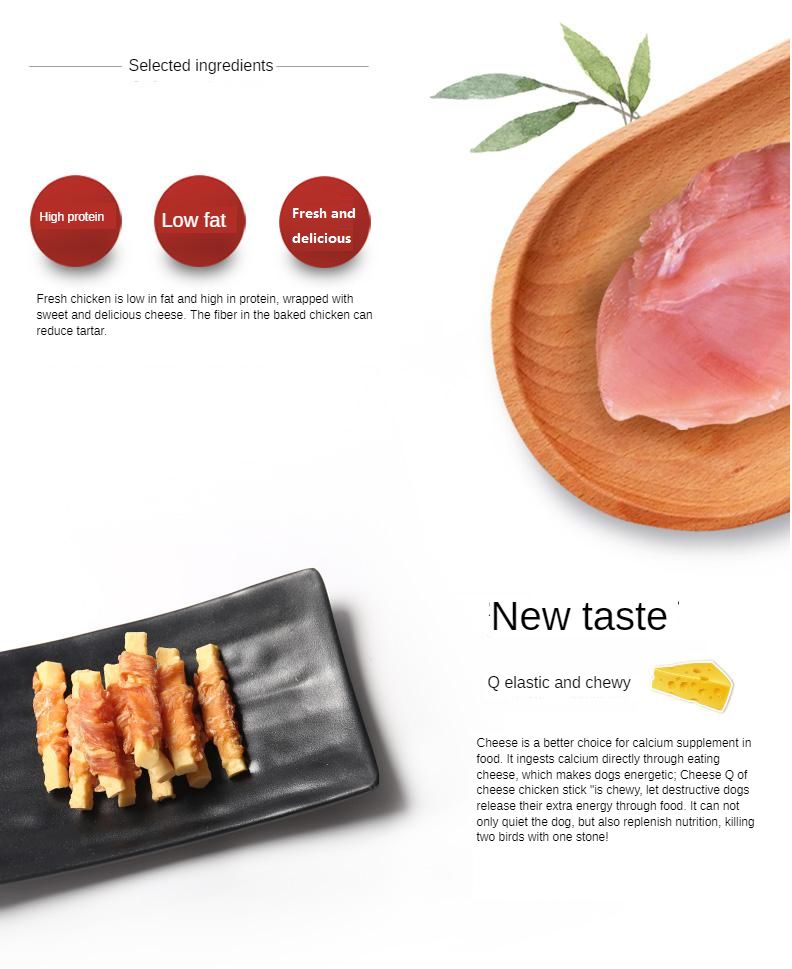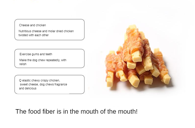 Cheese-fortified calcium chicken with sweet potato is rich in dietary fiber, which can effectively clear the intestines, prevent constipation and keep the breath fresh;