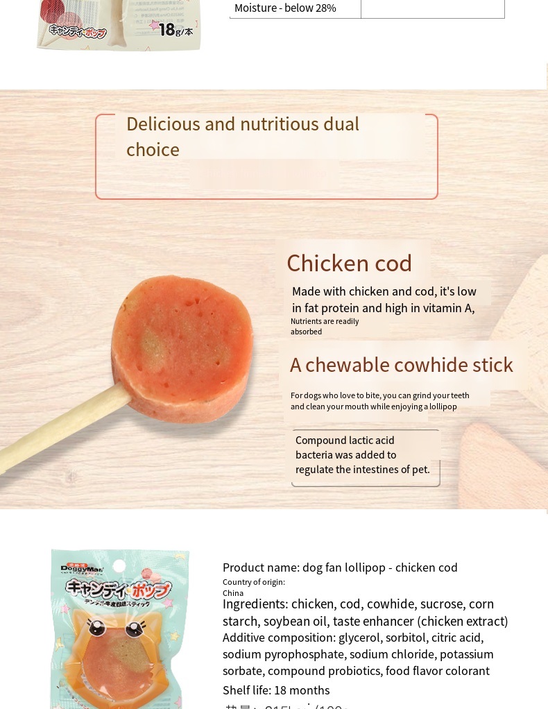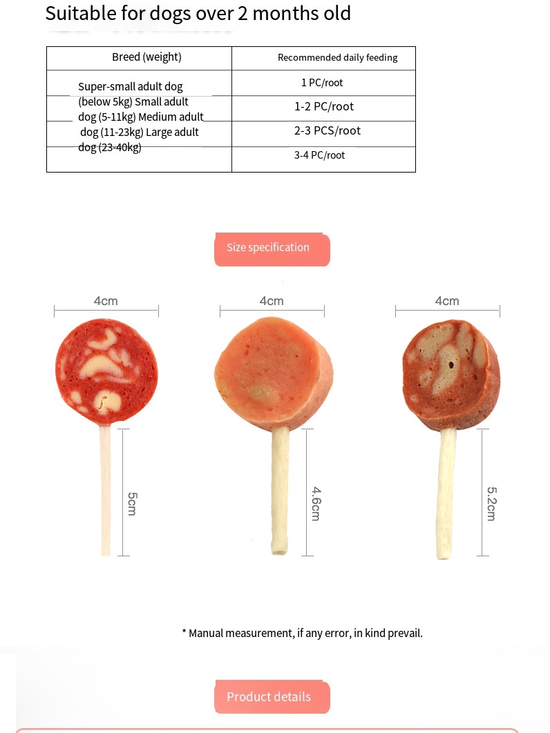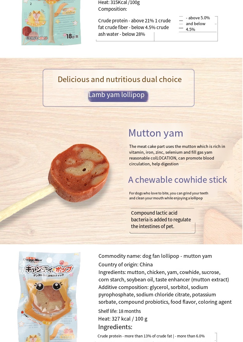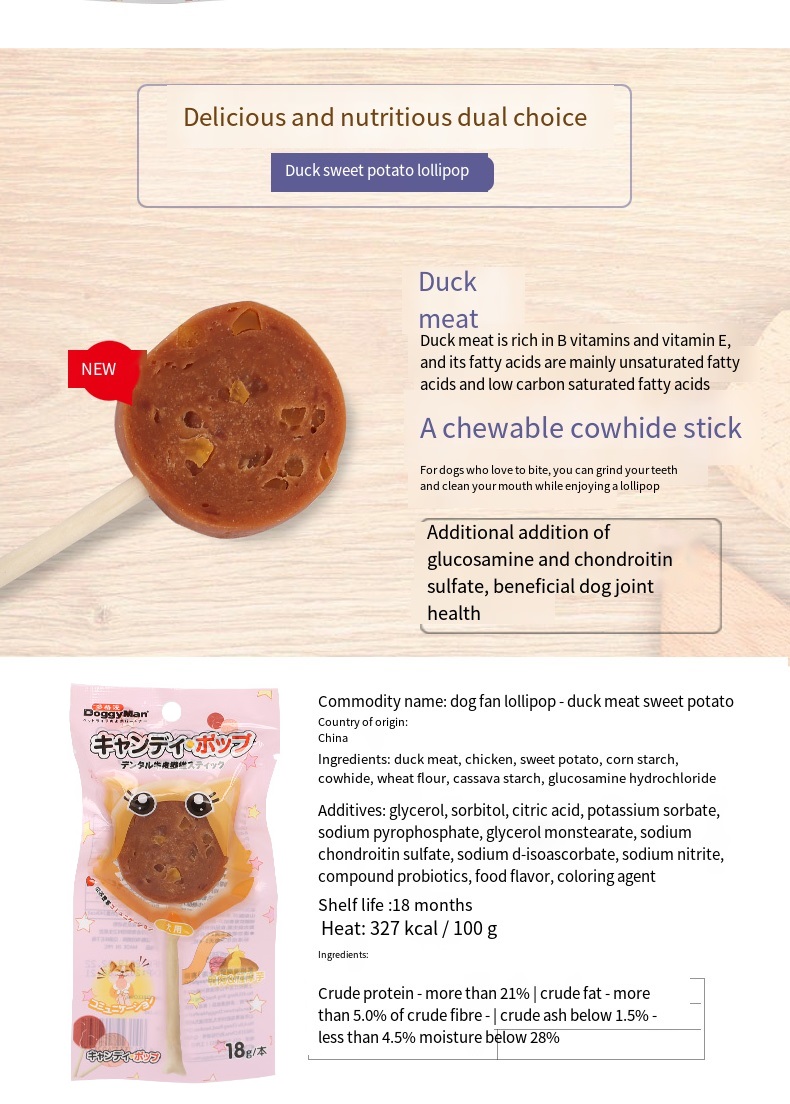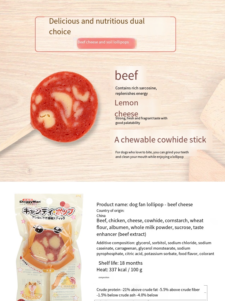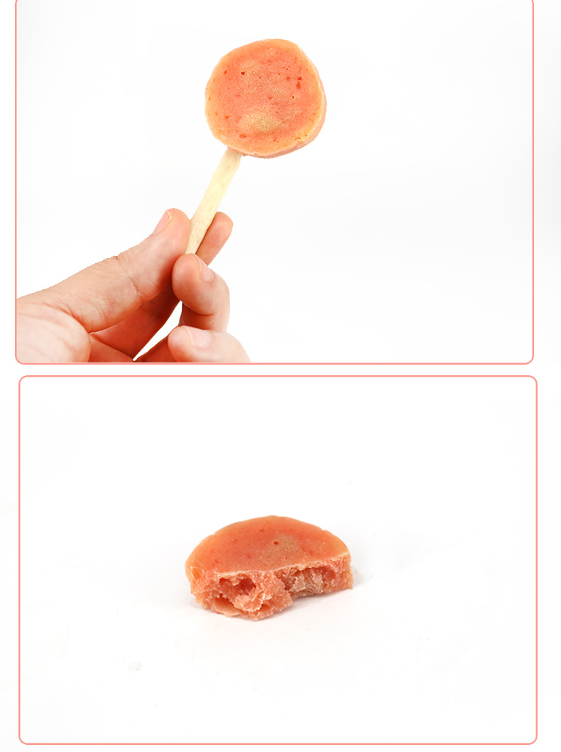 The “sugar cake” part is fresh meat with solid in gredients, and the grip part is an edible cowhide fiber rod with tooth cleaning function. Interactive snacks with the same appearance as lollipops