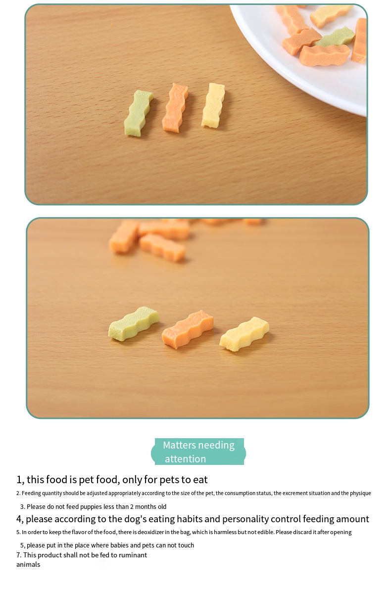 Carry 4-pack: 4-pack design, easy to carry and store. Small size, big nutrition: 20g*4 packs of individual packaging are easy to carry, and more convenient for weight. Eating scene: Going out to walk the dog, training rewards, dog products
