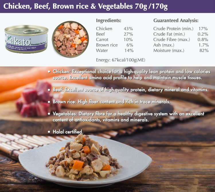Kakato Canned Wet Cat Food Chicken Beef Brown rice and Vegetables 70g