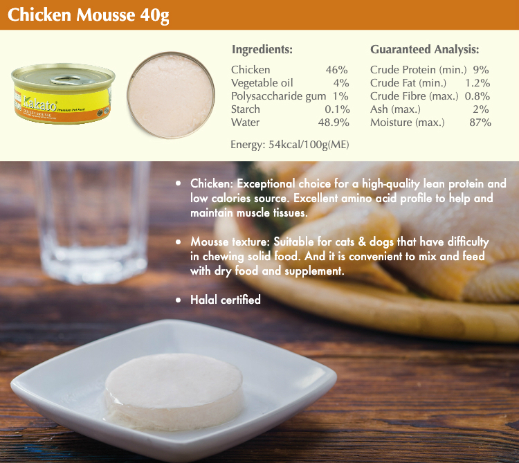 Kakato Canned Wet Cat Food Chicken Mousse 40g
