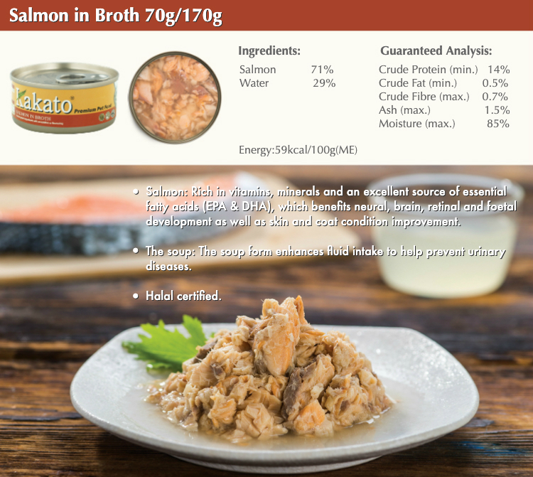 Kakato Canned Wet Cat Food Salmon in Broth 70g