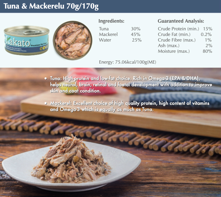 Kakato Canned Wet Cat Food Tuna and Mackerelu 70g